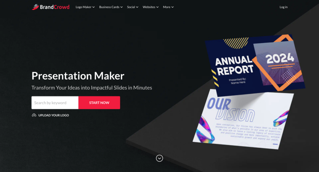 BrandCrowd also offers a dedicated Presentation Maker, built around customizable professional templates.